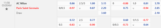 Tỷ lệ kèo bóng đá AC Milan vs Paris SG – 03h00 – 08/11/2023