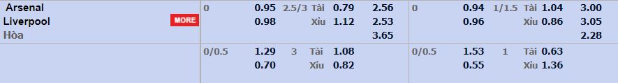- Mức kèo nhà cái cược chấp trận này: Hòa – Được – Thua. Arsenal ăn 0,95. Liverpool ăn 0,98