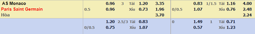 - Mức kèo nhà cái cược chấp trận này: Paris SG chấp 0,5 Trái. AS Monaco ăn 0,96. Paris SG ăn 0,96