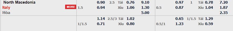 Tỷ lệ kèo bóng đá Bắc Macedonia vs Ý – 01h45 – 10/09/2023
