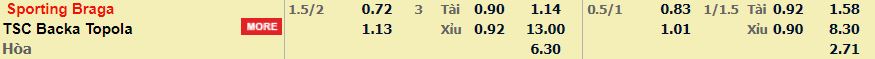 - Mức kèo nhà cái cược chấp trận này: Braga chấp 1,75 Trái. Braga ăn 0,72. TSC ăn 1,13