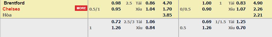 - Mức kèo nhà cái cược chấp trận này: Chelsea chấp 0,75 trái. Brentford ăn 0,98. Chelsea ăn 0,95