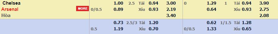 - Mức kèo nhà cái cược chấp trận này: Arsenal hấp 0,25 Trái. Chelsea ăn 1,00. Arsenal ăn 0,89