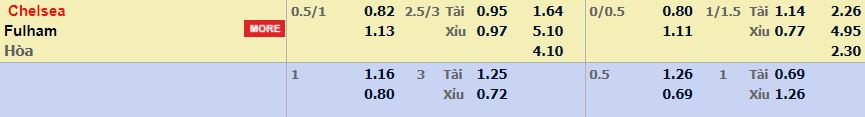 - Mức kèo nhà cái cược chấp trận này: Chelsea chấp 0,75 Trái. Chelsea ăn 0,82. Fulham ăn 1,13