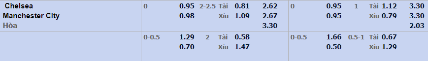 - Mức kèo nhà cái cược chấp trận này: Hòa – Được – Thua. Manchester City ăn 0.98. Chelsea ăn 0,95