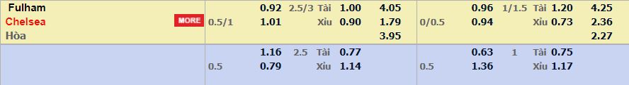 - Mức kèo nhà cái M88 cược chấp trận này: Chelsea chấp 0,75 Trái. Fulham ăn 0,92. Chelsea ăn 1,01