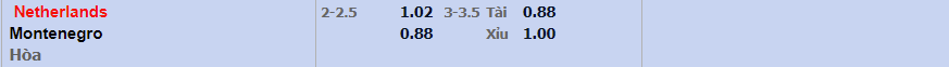 - Mức kèo nhà cái cược chấp trận này: Hà Lan chấp 2,25 Trái. Hà Lan ăn 1,02. Montenegro ăn 0,88