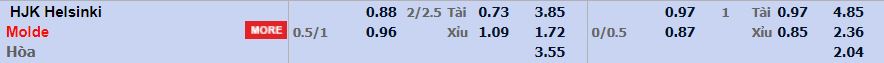 - Mức kèo nhà cái cược chấp trận này: Molde chấp 0,75 Trái. HJK ăn 0,88. Molde ăn 0,96
