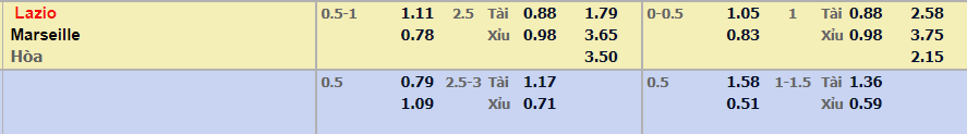 - Mức kèo nhà cái đưa ra trận này: Lazio chấp 0,75 Trái. Lazio ăn 1,11. Marseille ăn 0,78
