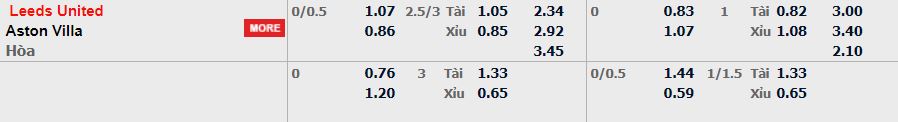 Có thể thấy phong độ trên sân nhà của Leeds trong thời gian gần đây là khá tốt không chỉ là thi đấu mà ở thể thức này cũng là rất tốt, điều này rõ ràng là có cơ sở hơn khá nhiều so với một Aston Villa không quá được tin tưởng mỗi khi rời xa Villa Park, vì vậy cửa Leeds ở lần này vẫn khả quan hơn khá nhiều. Về kèo tổng bàn thắng, 2 đội trong 5 trận đấu gần đây đều ghi nhận kết quả xỉu nhiều hơn bất chấp có rất nhiều yếu tố để có thể nổ tài lần này, đối với các chuyên gia thì những trận đấu cân bằng kiểu như này sẽ khả năng cao diễn ra bàn thắng ở mức vừa phải mà thôi.