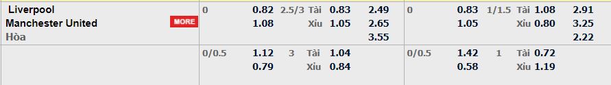 - Mức kèo nhà cái cược chấp trận này: Hòa – Được – Thua. Liverpool ăn 0,82. Manchester Utd ăn 1,08