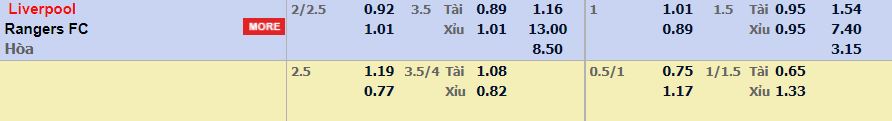 - Mức kèo nhà cái cược chấp trận này: Liverpool chấp 2,25 Trái. Liverpool ăn 0,92. Rangers ăn 1,01