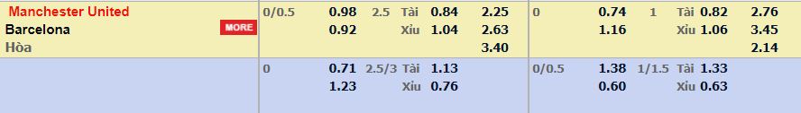- Mức kèo nhà cái cược chấp trận này: Manchester Utd chấp 0,25 Trái. Manchester Utd ăn 0,98. Barcelona ăn 0,92