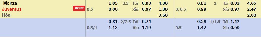 - Mức kèo nhà cái Vn88 ra cược chấp trận này: Juventus chấp 0,5 Trái. Monza ăn 1,05. Juventus ăn 0,88