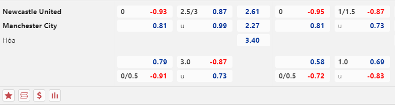 - Mức kèo nhà cái cược chấp trận này: Hòa – Được – Thua. Newcastle 1,00. Manchester City ăn 0,81