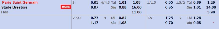 - Mức kèo nhà cái W88 trận cược chấp trận này: PSG chấp 3 Trái. PSG ăn 0,95. Brest ăn 0,97