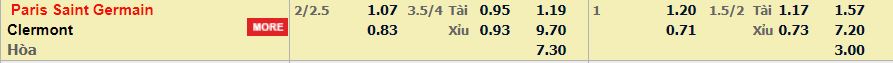 - Mức kèo nhà cái cược chấp trận này: Paris SG chấp 2,25 trái. Paris SG ăn 1,07. Clermon ăn 0,83