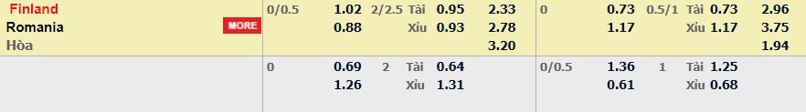 - Mức kèo nhà cái 188bet cược chấp trận này: Phần Lan chấp 0,25 Trái. Phần Lan ăn 1,02. Romania ăn 0,88