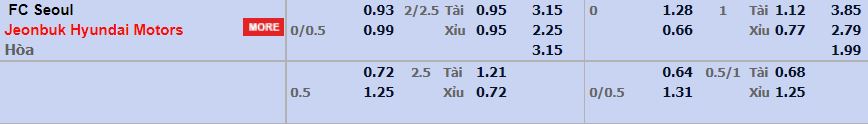 - Mức kèo nhà cái cược chấp trận này: Jeonbuk chấp 0,25 Trái. Seoul ăn 0,93. Jeonbuk ăn 0,99