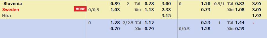 - Mức kèo nhà cái cược chấp trận này: Thụy Điển chấp 0,25 Trái. Slovenia ăn 0,89. Thụy Điển ăn 1,03