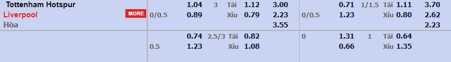 - Mức kèo nhà cái cược chấp trận này: Liverpool chấp 0,25 trái. Tottenham ăn 1,04. Liverpool ăn 0,89