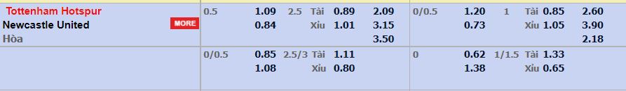 - Mức kèo nhà cái cược chấp trận này: Tottenham chấp 0,5 trái. Tottenham ăn 1,09. Newcastle ăn 0,84