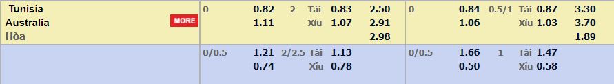 Tỷ lệ châu Á của trận đấu giữa Tunisia và Úc đang ở mức 0-0,5 nghiêng về phía đại diện của châu Phi. Song giới chuyên gia nhận định người chơi nên đặt niềm tin cho Chuột túi Kangaroo, Úc bởi dù phải nhận trận thua trong ngày ra quân nhưng đối thủ của họ là đương kim vô địch Pháp và nếu không tính trận đấu vừa qua, Úc đang bất bại 5 trận liên tiếp (thắng 4) gần đây nhất cả về tỷ số lẫn tỷ lệ. Chọn Úc. Còn về kèo tài xỉu đang ở mức kèo 2 bàn. Đây nhiều khả năng sẽ là trận đấu có ít bàn thắng cả Tunisia và Úc đều thi đấu rất thực dụng, đặc biệt là Tunisia khi 15/20 trận gần nhất của đội tuyển này chứng kiến tối đa 2 bàn. Vậy nên, chọn cửa xỉu.