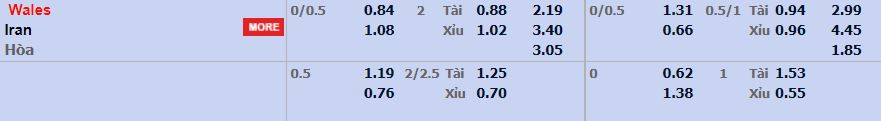 - Mức kèo nhà cái cược chấp trận này: Wales chấp 0,25 trái. Wales ăn 0,84. Iran ăn 1,08