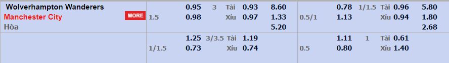 - Mức kèo nhà cái 12bet cược chấp trận này: Manchester City chấp 1,5 Trái. Wolves ăn 0,95. Manchester City ăn 0,98