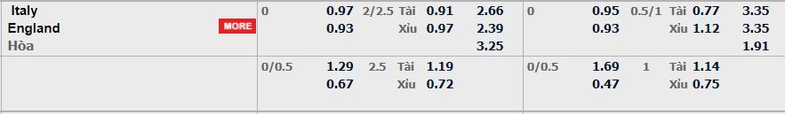 - Mức kèo nhà cái W88 cược chấp trận này: Hòa – Được – Thua. Italy ăn 0,97. Anh ăn 0,93