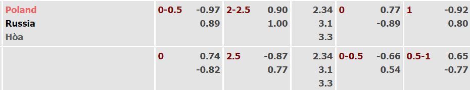 - Mức kèo nhà cái cược chấp trận này: Ba Lan chấp 0,25 Trái. Ba Lan ăn 1,00. Nga ăn 0,89