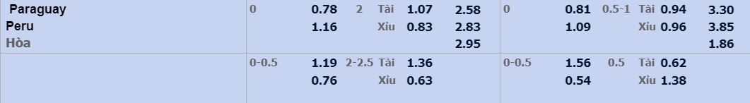 Đội tuyển quốc gia Paraguay đang sở hữu hàng thủ khá tốt khi là đội bóng để thủng lưới ít thứ 2 tại giải đấu với số bàn thua là 3. Trái ngược với đội tuyển quốc gia Paraguay thì đội tuyển quốc gia Peru là đội có hàng thủ tệ thứ 2 khi để thua tới 7 bàn chỉ trong 4 trận. Cả hai đội đều có 5 bàn thắng được ghi trong giai đoạn vòng bảng, chính vì yếu tố đó ở kèo tài xỉu 2 quả nên chọn tài bởi Peru khả năng sẽ bị dẫn trước ngay từ những phút đầu tiên sau đòn đánh phủ đầu của đoàn quân do huấn luyện viên Eduardo Berizzo dẫn dắt.
