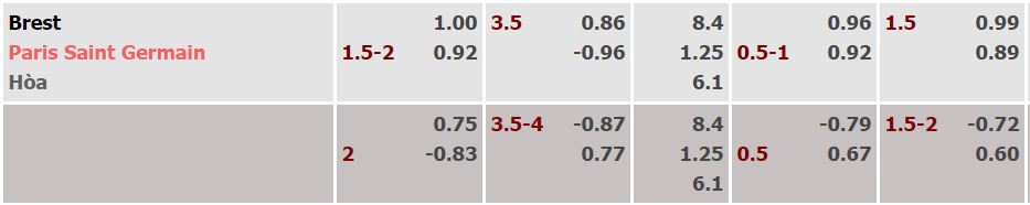 - Mức kèo nhà cái cược chấp trận này: Paris SG chấp 1,75 Trái. Stade Brest ăn 1,00. Paris SG ăn 0,92